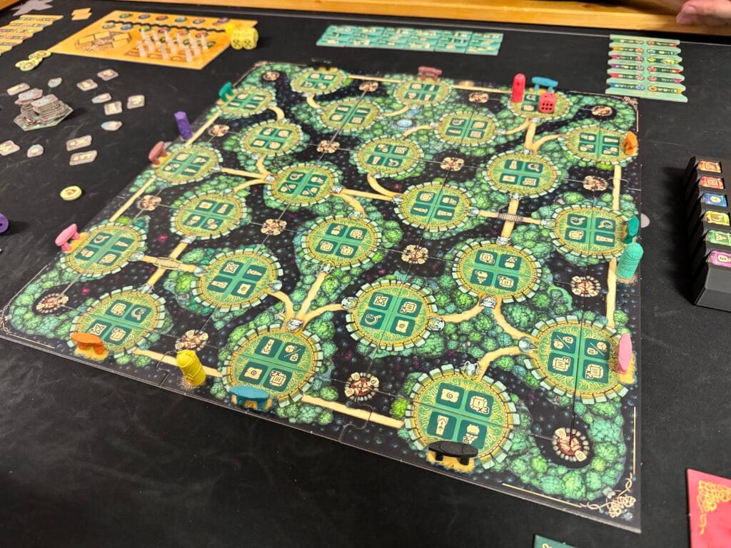 À deux, le plateau est si vaste que vous ne vous croisez jamais. L’interaction se limite à piocher des tuiles avant l’adversaire. Le jeu révèle son potentiel uniquement à 3-4 joueurs, où la bagarre pour les emplacements sur les sanctuaires devient féroce. À deux, c’est une course parallèle.